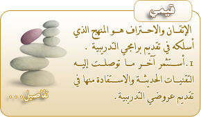 يرحب بكم الدكتور محمد الهادي المطيري ويشكركم على تصفح هذا الدليل التدريبي ويتمنى لكم وقتا ممتعا، وفائدة، واكتسابا للخبرة أكثر مما تتوقعون إن دوراتي مصممة ومعدة بأفضل ما توصلت إليه وسائل التدريب الحديثة، مادة وعرضا.